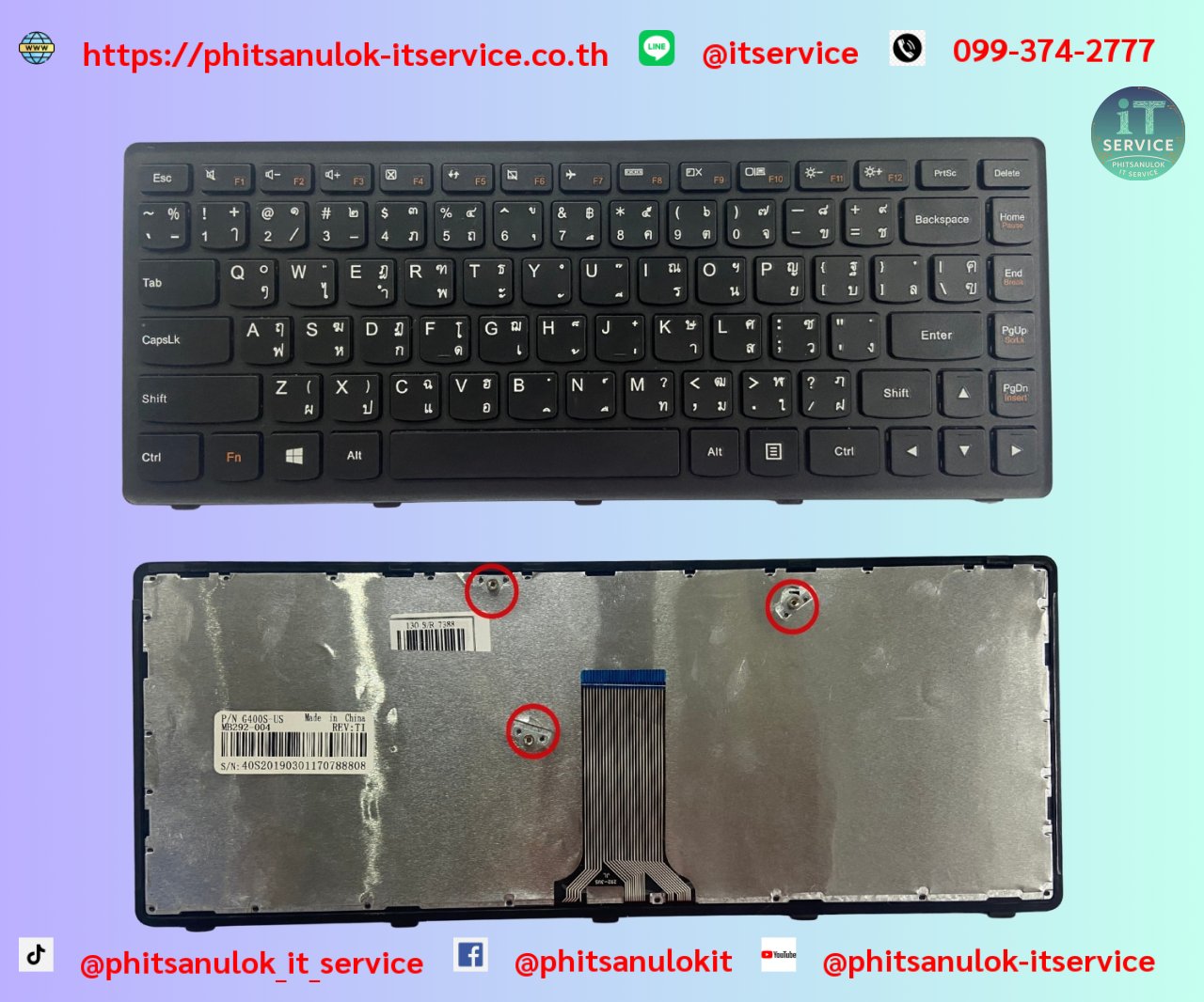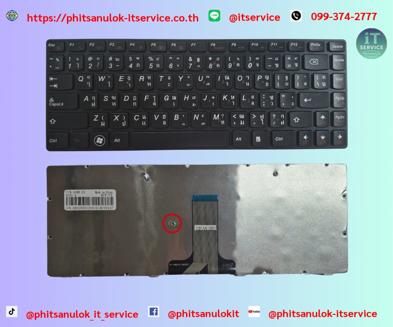 คีย์บอร์ดLenovo(น๊อตเล็ก)G480,Z380 6m